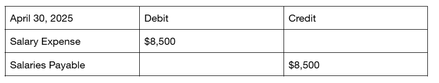 If employees at the company earned $8,500 in wages during the final week of April, but payroll isn’t run until the first week of May, the business must record accrued salaries at the month-end close to account for this liability.